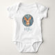 Joli cerf renne body pour bébé pour son premier Noël. Joli cerf sur fond bleu d'hiver. Personnalisez le bavoir avec le nom de votre bébé et l'année de naissance.