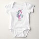 Mignonne unicorn rose et argent parties scintillant fille cadeau de corps bébé personnalisé pour baby shower ou anniversaire. Impressions violettes ©