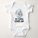 Ce produit est un body super mignon pour bébé ! Il présente un design adorable avec un paresseux, une fleur et un raton laveur ainsi que les mots "My Yiayia Loves Me" - parfait pour votre petit-enfant, petit-fils ou petite-fille ! Ce body fait un excellent cadeau pour n'importe quelle occasion - anniversaire, Noël, Hanoukka, Kwanzaa, Pâques, fête des grands-parents, Nouvel An, shower de bébé ou simplement pour le plaisir ! C'est également un excellent body pour annoncer une grossesse !