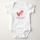 Body adorable avec des cœurs rouges et une typographie noire classique.