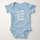 Un adorable body bleu pour bébé avec les mots "Juste fait 9 mois à l'intérieur" imprimés en blanc sur le devant. Choisissez votre taille.