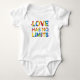 Ce dessin présente l'expression "L'amour n'a pas de limites" formée en couleurs arc-en-ciel colorées.