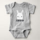 Ce design présente un petit lapin mignon avec un nom personnalisé dans un style de police sans empattement moderne gris.