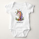 La Licorne Mignonne Fantaisiste Féminine Fleurs Roses Nom Personnalisé Bodysuits pour bébé fille présente une licorne mignonne avec des étoiles, des cœurs et des fleurs. Cadeaux parfaits pour les bébés filles pour les baby showers, nouveau-né, anniversaire, Noël, vacances et plus encore. Conçu par ©Evco Studio www.zazzle.com/store/evcostudio