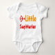 Petit tireur d'arc. Un beau romper pour un bébé avec l'image d'étoile Sagittarius. brun avec des lettres orange.