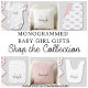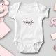 Ce bodysuit pour bébé fille comporte un monogramme élégant et un nom en noir et rose blush. Facilement personnalisable.