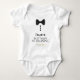 Cette pièce amusante pour bébé est conçue comme une faveur ou des bébés mariés. Le design se compose d'une image d'une cravate à arc noir et de trois boutons sur un arrière - plan blanc. Le texte dit Best Man in Training, et a un endroit pour entrer son nom ainsi que le nom du couple mariage et la date du mariage. Idéal pour les membres de votre mariage qui ont un bébé en remorque.