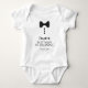 Cette pièce amusante pour bébé est conçue comme une faveur ou des bébés mariés. Le design se compose d'une image d'une cravate à arc noir et de trois boutons sur un arrière - plan blanc. Le texte dit Best Man in Training, et a un endroit pour entrer son nom ainsi que le nom du couple mariage et la date du mariage. Idéal pour les membres de votre mariage qui ont un bébé en remorque.