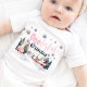 Une tenue de bébé d'anniversaire en hiver merveilleux pour un an avec une couleur rose et un fond scintillant et des flocons de neige. Parfait pour le 1er anniversaire