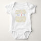 Costume mignon et élégant pour un bébé avec des étoiles d'or et des feux d'artifice et un nom personnalisable (il dit maintenant "Michael") en bleu moyen, puis un coeur rouge, puis, de nouveau en bleu moyen, Papa (pour [Baby] aime papa). Veuillez noter que ce design est spécialement conçu pour les combinaisons de corps blanches.