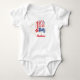 Mon 1er Juillet bodysuit ou t-shirt a Fireworks dessus et des étoiles en feuille d'or tout autour. Ci-dessous, vous le personnalisez avec le nom de votre enfant.