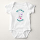 Votre petite fille va sûrement aimer porter ce mignon vêtement de mon premier vêtement de Pâques. Doté d'un lapin blanc tenant une carotte rose qui peut être imprimé en différentes couleurs de la carrosserie.