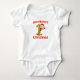 "Joie de Noël, personnalisée pour Votre Petit : Un mignon Santi, avec un arrière - plan neigeux bleu, et le nom de votre bébé font de cette combinaison de bébé la tenue parfaite pour un premier Noël magique." Customisez le dessin avec le nom du bébé. Utilisez le bouton "Personnaliser" pour modifier le texte.