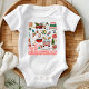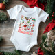 Mon premier Noël Images rétro mignonnes et funky Body bébé fille Body bébé garçon Le body bébé comporte le texte "Mon 1er Noël" dans une typographie moderne accentuée d'éléments mignons tels qu'un camion avec un sapin, un t-shirt laid, des ornements, des cadeaux, des chaussettes, du houx, un sapin de Noël et des décorations. Cadeau de Noël idéal pour une petite fille ou un petit garçon. Créé par Evco Studio www.zazzle.com/store/evcostudio