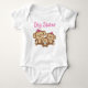 Un design mignon avec trois singes, l'un représentant la grande soeur, l'autre représentant la soeur centrale, et le troisième un garçon singe représentant le petit frère ! Cette conception spécifique comprend du texte rose qui lit Big Sister. Nous avons les T-shirts Middle Sister et Little Brother assortis, costumes, rompers, tee - shirts à manches longues, et autres vêtements aussi!