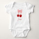 Embrassez le style coquette tendance avec ce design mignon avec un arc rose et un graphique en cerisier rouge. Facile à personnaliser avec le nom du bébé ou vous pouvez choisir de le laisser vide et juste avoir le graphique.