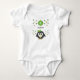 Personnalisez ce mignon costume de bébé pingouin avec un nom et une initiale. Conçu avec des étoiles vertes et jaunes. Idée cadeau pour un nouveau bébé.