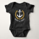 Une ancre nautique conçue sur mesure, des feuilles de lauriers de style or et une étoile d'or avec et votre nom personnalisé ou nom de bateau sur un bodysuit de bébé d'une pièce. Plusieurs couleurs au choix. Fait un grand cadeau.