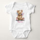 Joli body bébé fille une pièce réalisé en blanc, avec des graphismes d'un ours en peluche doux avec des ailes roses et bleues. Personnalisez le texte rose selon vos besoins. Idée de cadeau adorable pour une baby shower. Le tee-shirt adulte Mama Bear est disponible.