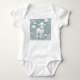 Body bébé avec un agneau charmant et doux entouré de nuages et d'une lune sur un fond bleu.