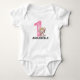 Body bébé ours en peluche couronné de paillettes roses personnalisé avec un grand numéro 1 pour les filles d'un an.
