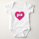 Ce bébé romper présente un coeur rose chaud plein de vitalité, contenant les lettres coques inférieures pleines d'audace, blanches et arrondies pa, une abréviation ludique pour la Pennsylvanie, l'état de la pierre angulaire.