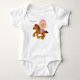 Une adorable petite cowgirl blonde monte son poney marron sur cette mignonne chemise. Elle est habillée en rose et bleu, avec des bottes roses assorties, foulard, selle et bride. Le nom de votre bébé est écrit en caractères marron en haut à gauche. Mignonne pour votre petite cowgirl ! *Merci à Real Deal Clip Art pour l'utilisation de leur oeuvre dans ce design.