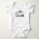 Vêtements personnalisés avec un graphique "Petit cousin" dans des polices modernes tendance et un design à flèche bohème. Parfait pour une photo d'annonce de grossesse ou des chemises de cousin assorties à l'arrivée du nouveau bébé ! Utilisez les outils de conception pour modifier les couleurs ou ajouter votre propre texte et vos propres photos pour créer un design de t-shirt personnalisé unique. Choisissez parmi une grande variété de t-shirts, de bodies pour bébé, de débardeurs et de styles de sweat-shirts pour hommes, femmes, enfants, tout-petits et bébés. Consultez notre magasin pour d'autres modèles assortis pour toute la famille.