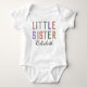 Célébrez la joie de la sororité avec notre adorable Body Bébé orné de la phrase attendrissante "Petite Soeur" personnalisée avec un nom personnalisé. Le design émouvant est complété par des polices de couleur pastel rétro charmantes au centre, créant un ensemble charmant et élégant pour les frères et sœurs. Conçu avec la douceur et le confort à l'esprit, cette tenue de sœur assortie est parfaite pour capturer des moments précieux et renforcer un lien fraternel fort. Laissez vos petits tourbillonner avec style avec ce body doux et personnalisé, un ajout parfait à leur garde-robe qui exprime magnifiquement l'amour entre sœurs.