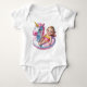 A cute young girl gently drifts on a pink and white unicorn float, gliding across a crystal-clear, blue swimming pool.