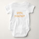 Ce design mignon pour le 1er anniversaire présente notre petite citrouille avec le mot "un" sur le devant et "petite citrouille" sur le dos. La collection de produits coordonnés est disponible dans notre boutique, zazzle.com/doodlelulu*. Contactez-nous si vous avez besoin de ce design appliqué à un produit spécifique pour créer votre propre article unique assorti ! Merci beaucoup d'avoir consulté un design DoodleLulu par 2 june bugs !