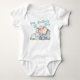 Mignonne maillot de bébé garçon de la mère jour avec t-shirt assorti disponible pour maman. Un design aquarelle avec maman aimante et adorable petit éléphant. Le texte dit Notre 1ère Fête des Mères en caractères turquoises, ornés de coeurs d'amour.