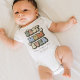 Body pour bébé pour la première fête des mères avec le titre 'MEILLEURE MAMAN POUR TOUJOURS' dans une police rétro multicolore, un cœur mignon, la phrase "bonne 1ère fête des mères", et le nom du bébé.