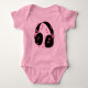 Doux ! Un casque mignon avec les notes musicales roses dansant autour. Pour votre bébé de rock ! En outre disponible dans le bleu dans notre magasin.