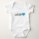 Ce body bébé présente la phrase "Sauvage au cœur" véhiculée par le mot "sauvage" suivi du signe @ et d'un cœur turquoise.