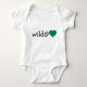 Ce body bébé présente la phrase "Sauvage au cœur" véhiculée par le mot "sauvage" suivi du signe arobase et d'un cœur vert kelly.