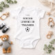 A modern baby bodysuit featuring a custom name with bold “Soccer Legend in Training” typography and a clean sporty design. The minimalist layout keeps the focus on strong lettering, making it perfect for everyday wear or as a thoughtful gift.