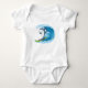 Ce maillot de bébé est affiché en blanc avec un imprimé de requin de surf mignon. Acheter tel quel ou personnaliser. Image stock freepik.com