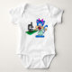 Cette image présente un vêtement de bébé blanc imprimé avec un joyeux chat de dessin animé bleu portant un manteau de laboratoire et un arc rose, debout fièrement à côté d'un microscope sur une table verte. Le large sourire et les bras ouverts du personnage lui donnent une ambiance ludique et éducative, parfaite pour les futurs scientifiques ou les esprits curieux. Un design ludique et élégant idéal pour les tenues thématiques ou comme un cadeau mignon célébrant l'apprentissage et la découverte.