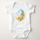 Un ours en peluche se reposant sur une lune en croissant avec un casquette bleu et un texte "Sweet Dreams". Montré ici en bleu, cet article est aussi disponible en rose.