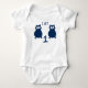 Deux hiboux bleus sur un body blanc de bébé pour le premier anniversaire du bébé. J'ai un an.