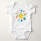 Préparez-vous à une tenue hors du monde ! Ce système solaire super mignon est doté d'un soleil souriant, Mercure, Vénus, Terre (avec la lune), Mars, Jupiter, Saturne, Uranus et d'un vaisseau-fusée qui explose dans l'espace. Le libellé modifiable comprend "Premier voyage autour du Soleil". Le Rocket ship peut être customisé avec l'âge pour votre propre astronaute. Le dos comprend le navire-fusée avec l'âge.