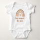 Ce pull à une pièce est muni d'une terre cuite bohème et d'un arc-en-ciel rouille avec un soleil au milieu et les mots "voici le soleil" écrit dans une police manuscrite boho. Ce pull est parfait pour annoncer un nouveau bébé dans la famille ou comme cadeau baby shower.
