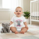 Déclamez votre arrivée dans le monde avec le style le plus doux. Ce body bébé adorable présente un éléphant bébé gris précieux avec de grandes oreilles tombantes et la phrase rose audacieuse "Tiny Thunder gros cœur". Parfait pour votre petit qui fait une grande entrée mais fait fondre tout le monde avec ces câlins.