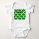Ce costume de bébé a un design scandinave de trios feuilles se répétant à travers le design dans trois nuances de vert.