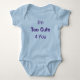 Drôle, mignon bleu une pièce pour un bébé nouveau-né avec les mots habituels "Je suis trop mignon 4 vous" dans des polices tendance et élégantes.