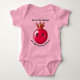Un petit costume rose pâle avec en son centre une adorable grenade à la kawaii, aux formes arrondies et joyeuses, aux couleurs rouges vives, et une expression joyeuse avec des yeux pétillants et un doux sourire. Le design est ludique et festif, parfait pour Rosh Hashanah. Le haut de la bodysuit présente un texte personnalisable qui dit "Nouvel An, Nouveau Début", tandis que le bas montre l'expression "Un peu de douceur grenade !" - capturant l'esprit de la fête de façon douce et élégante.