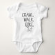 Le design comprend la citation "Crawl Walk Bike" avec une icône moto mignonne, adaptée pour un bébé ou un faire-part de grossesse.