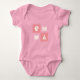 Body pour nouveau-né avec un nom de bébé de quatre lettres pour une petite fille et ses parents en rose chaud et beige. Les 4 lettres sont personnalisables selon le nom de l'enfant. Les lettres sont choisies dans une police mignonne pour un rendu enfantin.