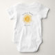 Ce bodysuit pour bébé adorable présente un soleil jaune souriant et la phrase "Voici venir le fils" dans une typographie de script élégant. Il est facilement personnalisable. Aquarelle originale © Michele Davies.